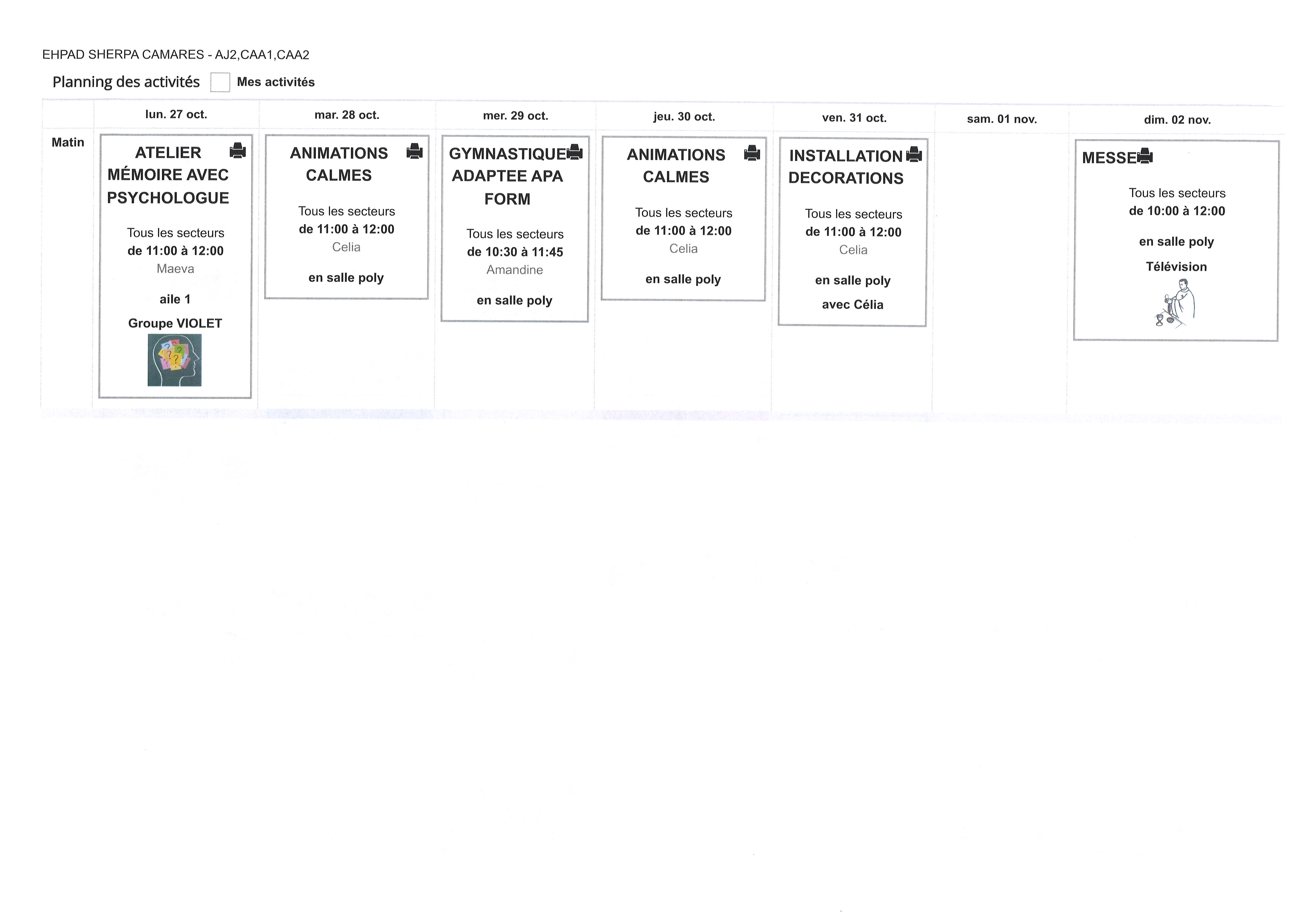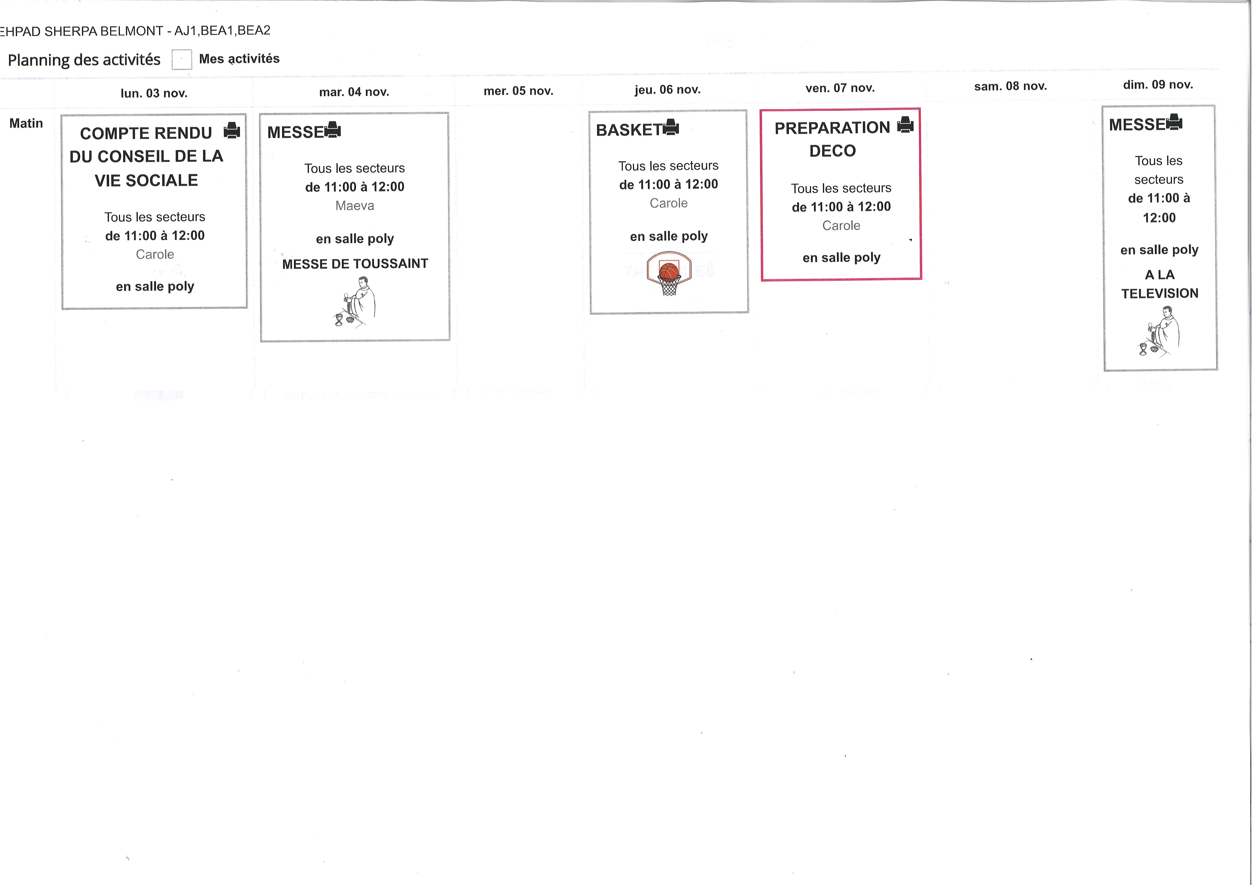 PLANNING DU 27 OCTOBRE AU 2 NOVEMBRE 2025