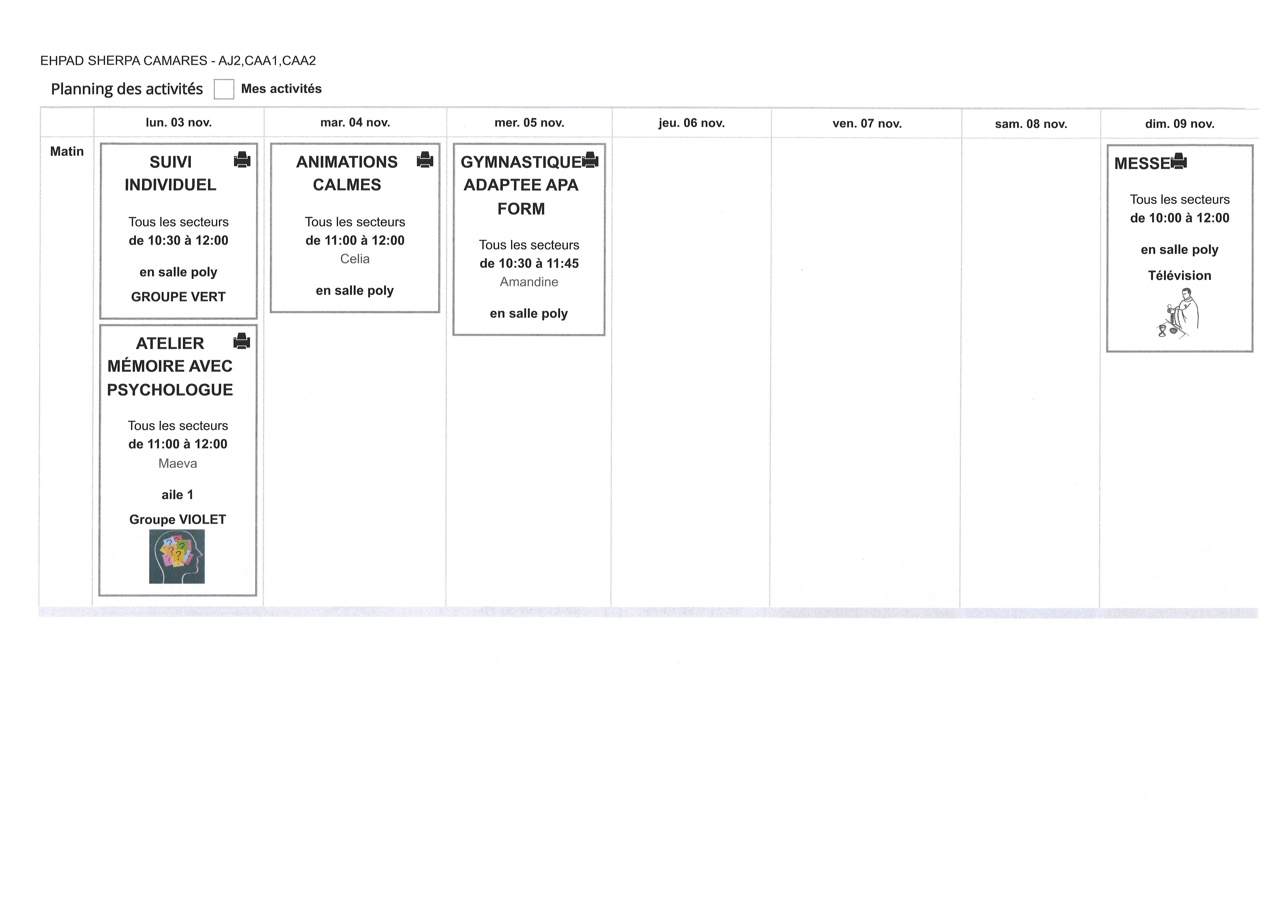 PLANNING DU 03 AU 09 NOVEMBRE 2025