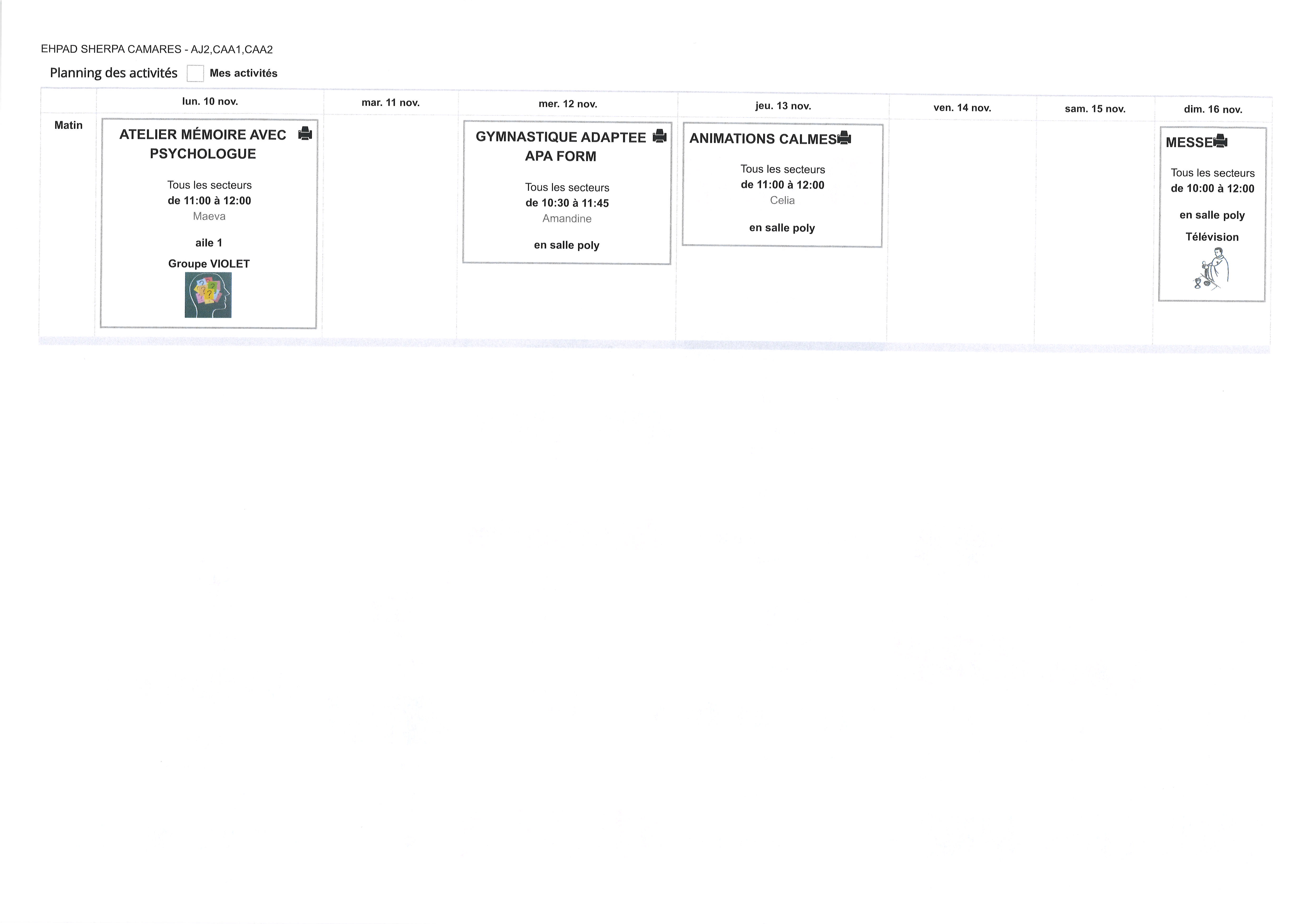 PLANNING DU 10 AU 16 NOVEMBRE 2025