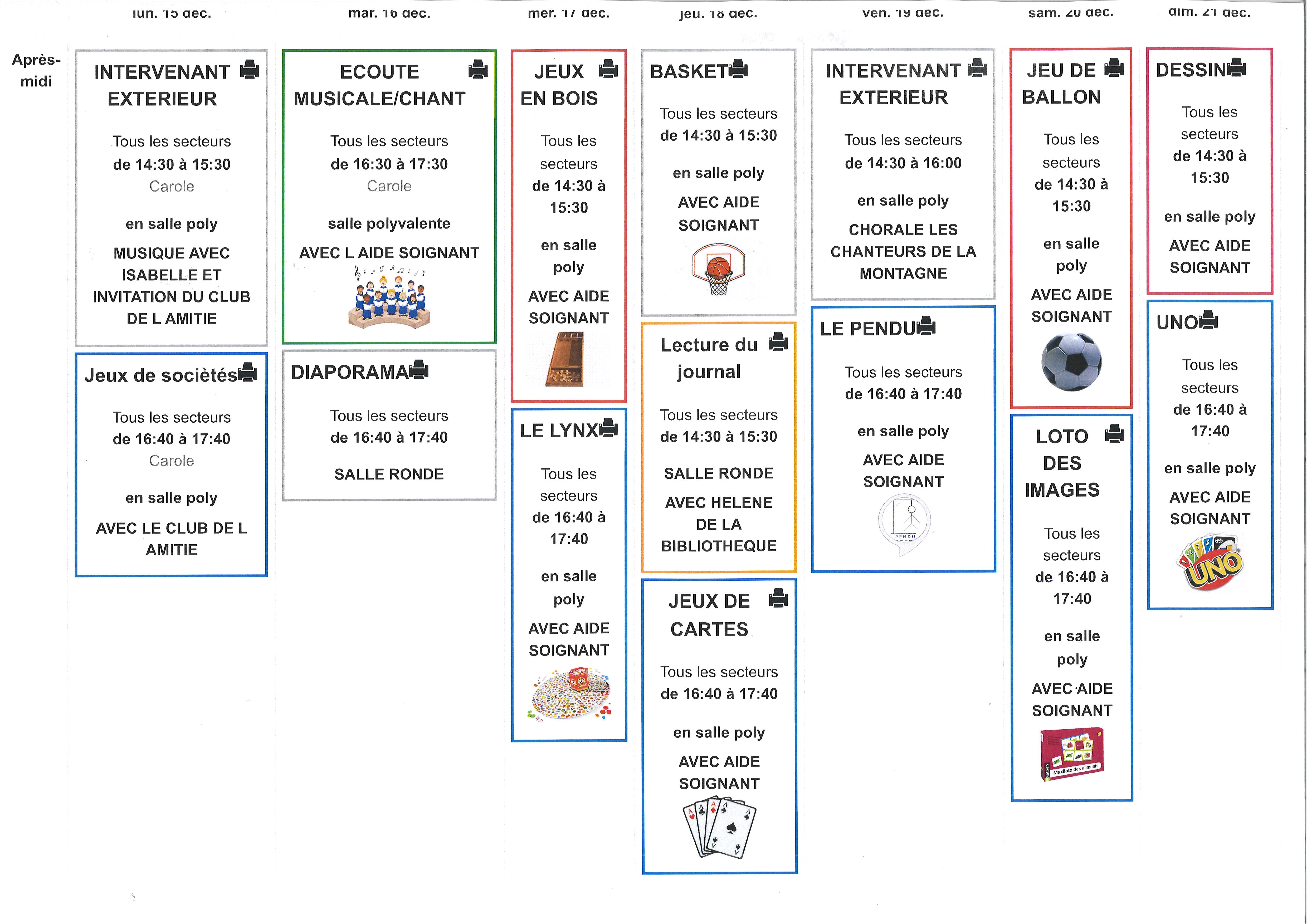 PLANNING DU 15 AU 21 DECEMBRE 2025