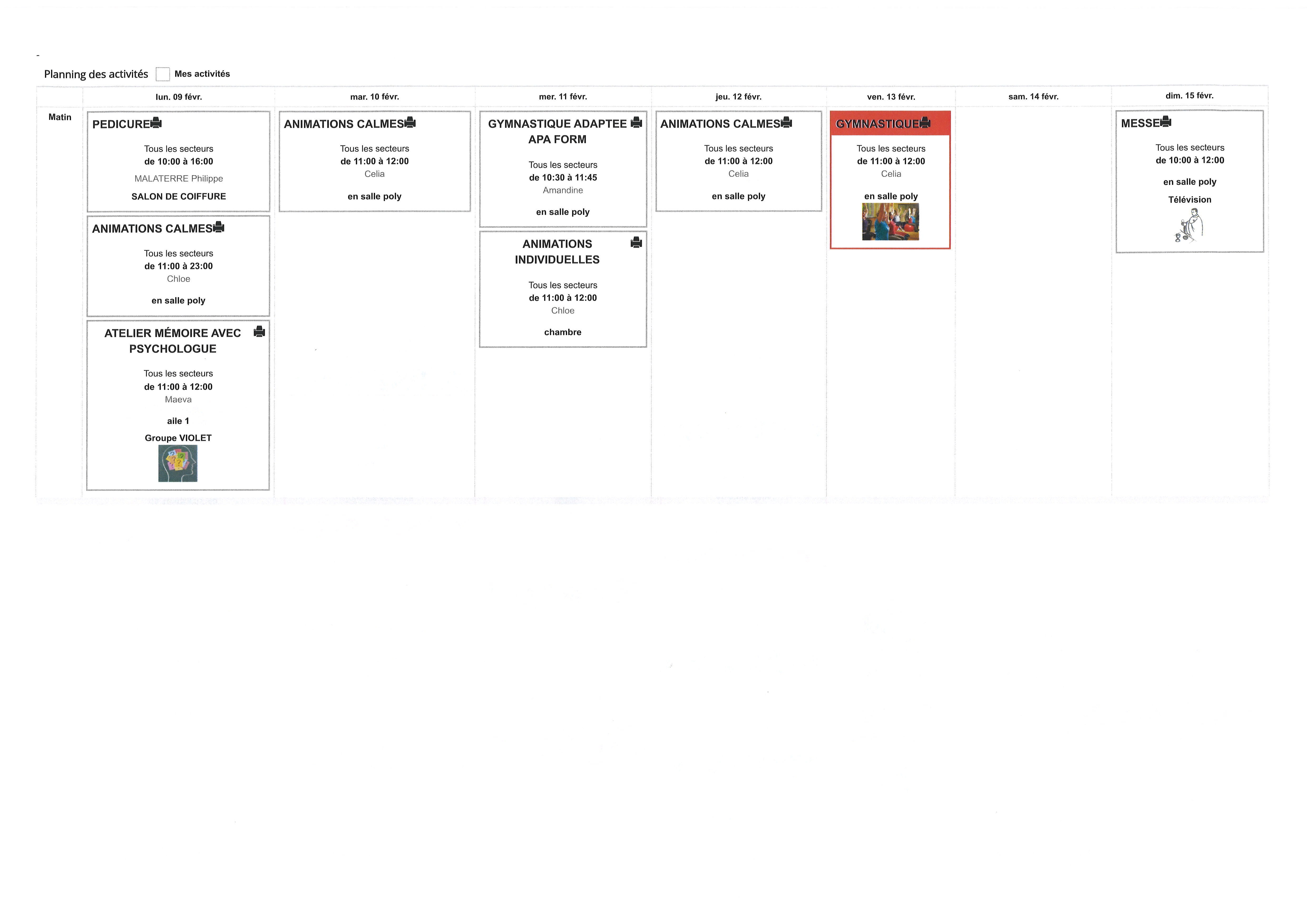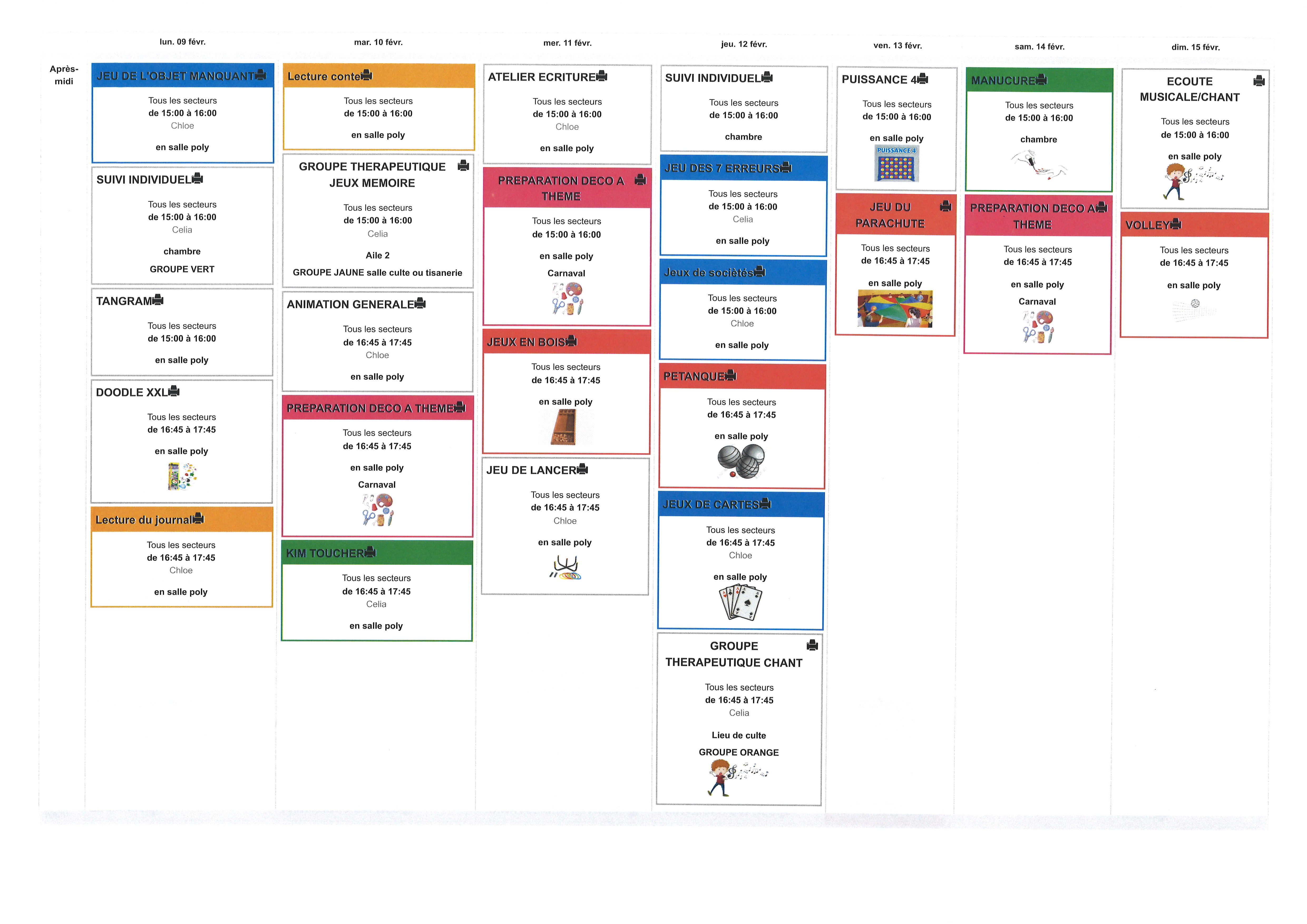 PLANNING DU 09 AU 15 FEVRIER 2026